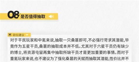 《明日方舟》是一款备受玩家喜爱的角色扮演游戏。其中,桑葚作为其中的一位干员,拥有着独特的技能和特点。在游戏中,掌握桑葚的技能是非常重要的,因为她可以与其他干员搭配使用,使整个阵容更加出色。下面,就让我们来详细了解一下桑葚的技能吧。