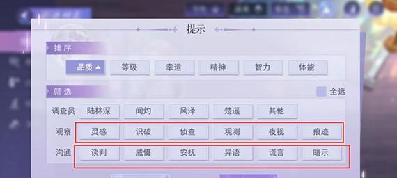 除了影迹升级系统外,游戏中还有其他相关系统,比如角色技能、剧情任务等。这些系统都与调查技能的提升有关,玩家可以根据需要进行了解。