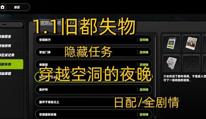 在游戏中,零号任务道具常常被各位玩家所忽略,但实际上,它们拥有着非常神奇的效果。本篇文章将为大家详细介绍零号任务道具的效果,并带领大家一起探索这个奇妙的游戏世界。