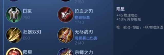 由于达摩在对线时常常面临敌方英雄的集火攻击,因此在出装时需要考虑增加自身的生存能力。影刃作为一件高防御装备,不仅能提供额外的物理防御和生命值,还具备独特的被动效果,能够有效降低受到的伤害。