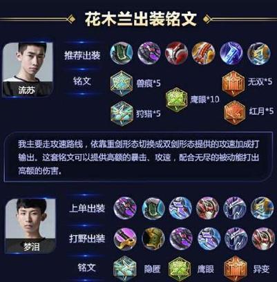 花木兰是一个既有爆发输出又有生存能力的辅助英雄,出装时应注重提升这两个方面的装备选择。