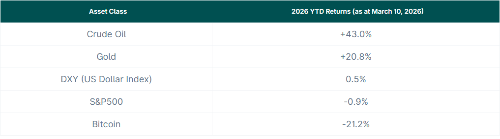隨著伊朗戰爭爆發,2026 年原油價格上漲速度超過所有其他資產類別。