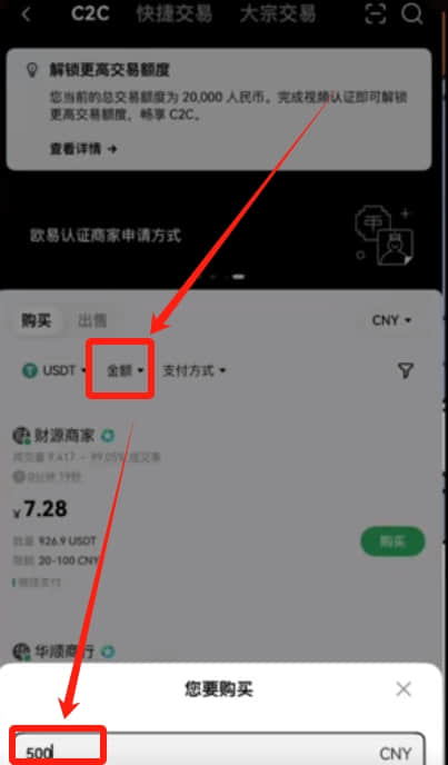 在后面金额这里筛选一下我们要购买的金额,比如说500人民币,我们就输入500,点击确认。