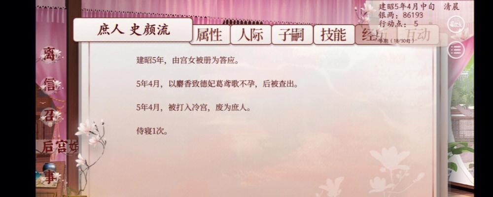 在深宫曲这款游戏中,技能点数是玩家提升角色能力的重要途径。正确的分配和运用技能点数可以让你的角色更加强大,战胜一切困难。本文将全面解析深宫曲游戏中的技能点数系统,帮助你在游戏中取得更好的成绩。