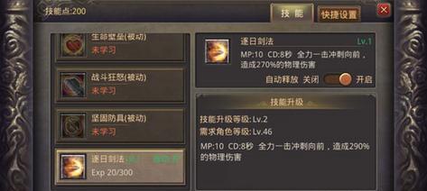 在《怒剑传奇》这款游戏中,作为战士角色,技能设置的合理性直接影响到战斗力的提升。本文将为大家详细介绍战士技能设置的攻略,帮助玩家们打造无敌战士。