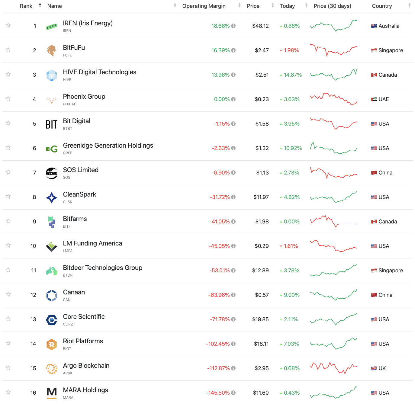 根據 CompaniesMarketCap 的數據,按市值計算最大的比特幣挖礦公司 IREN(Irsis Energy),其營運保證金上升了 18.66%。