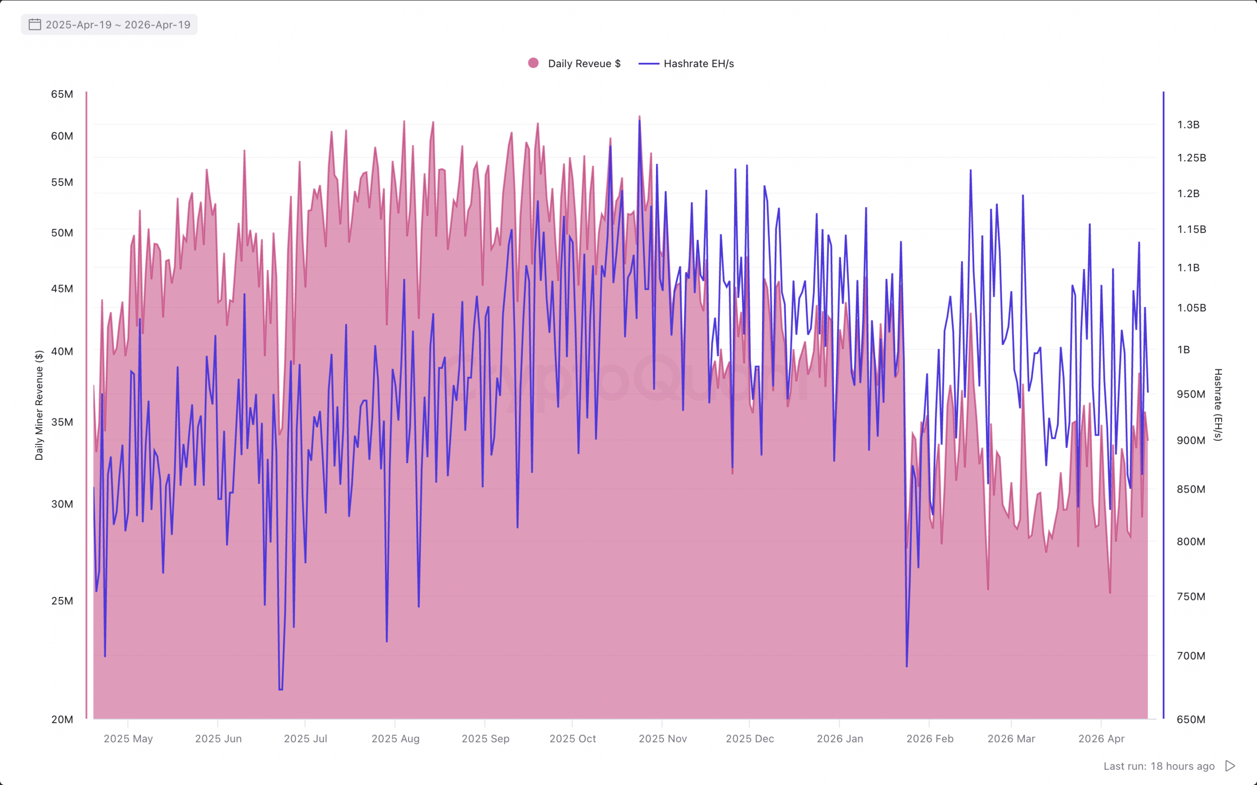 收入已降至 2800 萬至 3500 萬美元之間,而算力則極度波動,並突破過往高點。總體而言,這意味著目前挖礦的利潤較低。