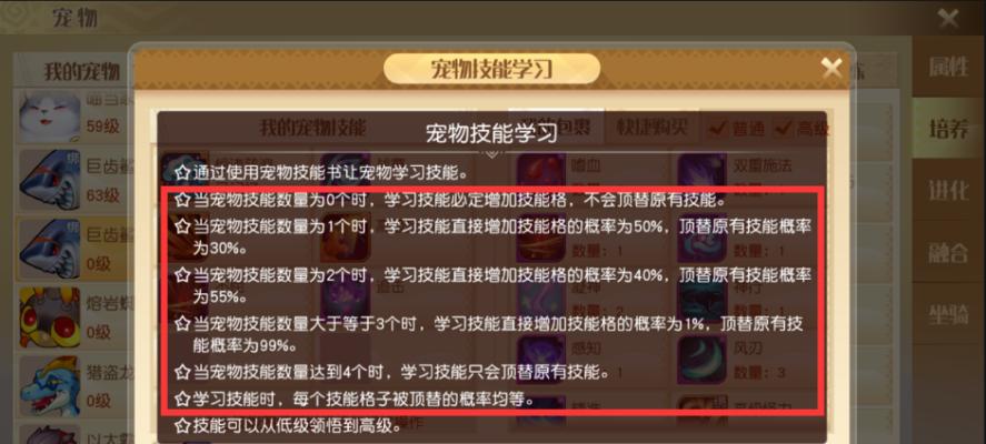 提升宠物辅助能力的技能