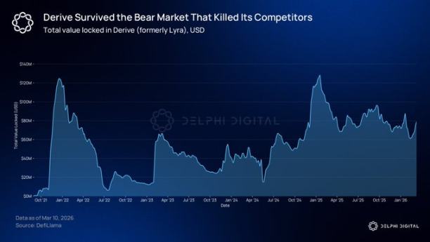 去中心化衍生品的市場份額在兩年內從 2% 攀升至超過 10%。Hyperliquid 已證明,去中心化交易所(DEX)在速度和透明度上可與中心化交易所媲美。然而,鏈上期權尚未出現類似級別的代表性項目。
