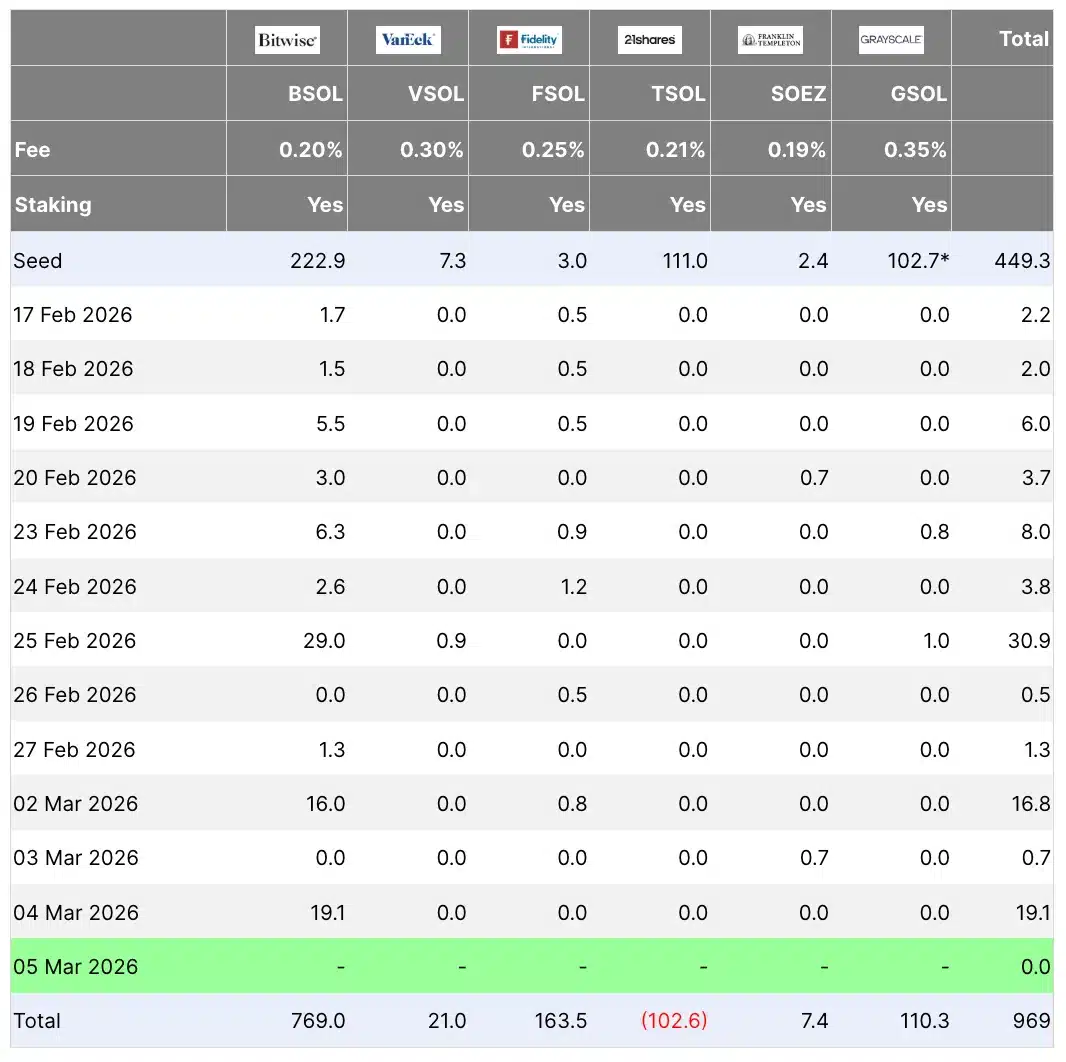 另一方面,Solana [SOL] 呈現出不同的趨勢。即使在近期市場 疲軟 期間,SOL ETF 仍持續錄得資金流入,於 3 月 4 日吸納了 1910 萬美元。
