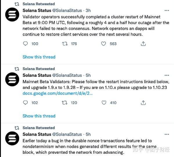 Solana 开发人员解决了这个问题,并在 Twitter 上写道:“当网络的两个部分出于任何原因在给定相同交易的情况下计算不同的状态时,就会发生链分裂。它们是一类难以完全预防的错误,即使有很大的测试覆盖率,也会影响任何链条。